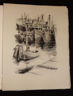 In-4 (26 x 33,5 cm), exemplaire en feuilles sous couverture rempliée, chemise et emboîtage, 1 de 140 exemplaires sur Rives BFK, 128 pages, illustré de pointes sèches originales de Ch.-M. Echard ; quelques taches, frottements et pliures sur l'étui carton, mors usés et quelques traces sur la chemise, par ailleurs le reste de l'ouvrage est en bon état.