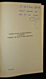 In-8 (16 x 24,5 cm), broché, 32 pages, exemplaire enrichi d'un envoi manuscrit et signé de l'auteur ; couverture frottée et salie, petite tache sur le plat supérieur, coiffes un peu usées, coins légèrement cornés, intérieur frais, bon état.