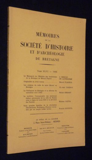 In-8 (16,3 x 25 cm), broché, 128 pages, Tome XXXIX des Mémoires de la Société d'Histoire et d'Archéologie de Bretagne (année 1959) ; quelques petites rousseurs sur le premier plat, bon état général.