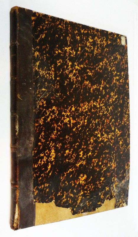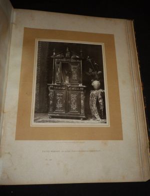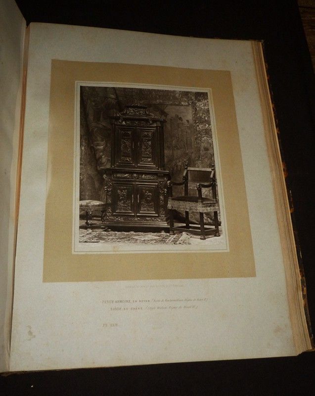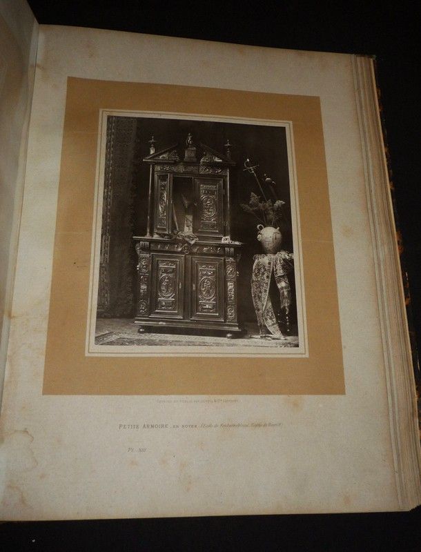 In-plano (38,5 x 51 cm), reliure demi-chagrin, LV (55) planches, sans date, sélection de l'éditeur Goupil & Cie, photographies en noir et blanc de meubles anciens ; mors supérieur fendu en queue, mouillures aux plats un peu gondolés, manque de papier reliure au premier plat, quelques rousseurs et traces à l'intérieur par ailleurs assez bien conservé, en l'état.