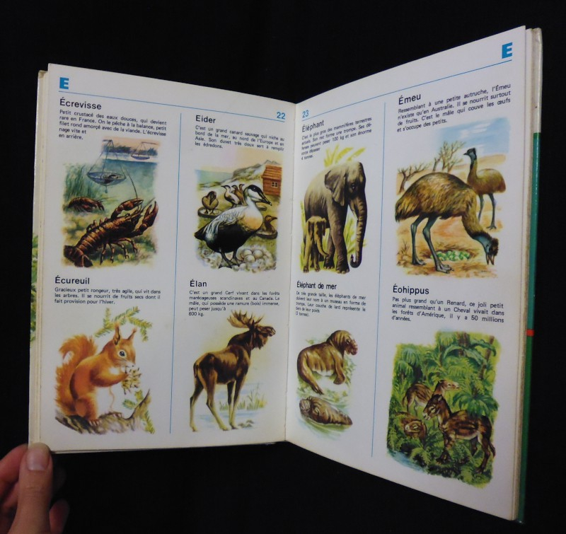 In-8 (17,5 x 24,5 cm), album cartonné, 62 pages, 240 animaux en couleur ; coiffes et coins un peu frottés, marque de pli aux mors (pelliculage), intérieur frais, assez bon état.