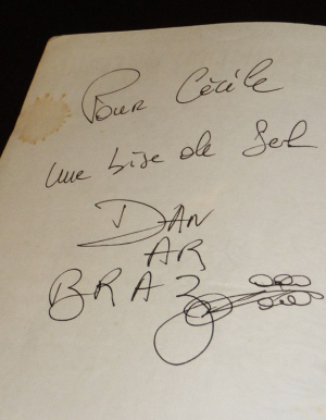 In-8 (14,8 x 21,2 cm), dos agrafé, 8 pages, envoi de Dan Ar Braz ; quelques taches sur les plats, par ailleurs assez bon état général.