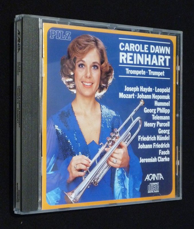 1 CD "Trompete / Trumpet" de Carole Dawn Reinhart, comprenant des oeuvres de Joseph Haydn, Leopold Mozart, Johann Nepomuk Hummel, Georg Philipp Telemann, Henry Purcell, Johann Friedrich Fasch, Georg Friedrich Händel, Jeremiah Clarke ; très bon état général.