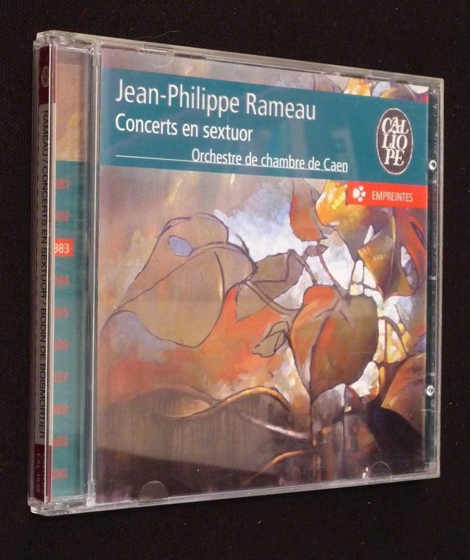 1 CD "Jean-Philippe Rameau : Concerts en sextuor - Bodin de Boismortier : Première suite pour le clavecin", interprété par l'Orchestre de chambre de Caen et Mireille Lagacé ; quelques petites marques de frottement sur le boîtier, par ailleurs bel état.