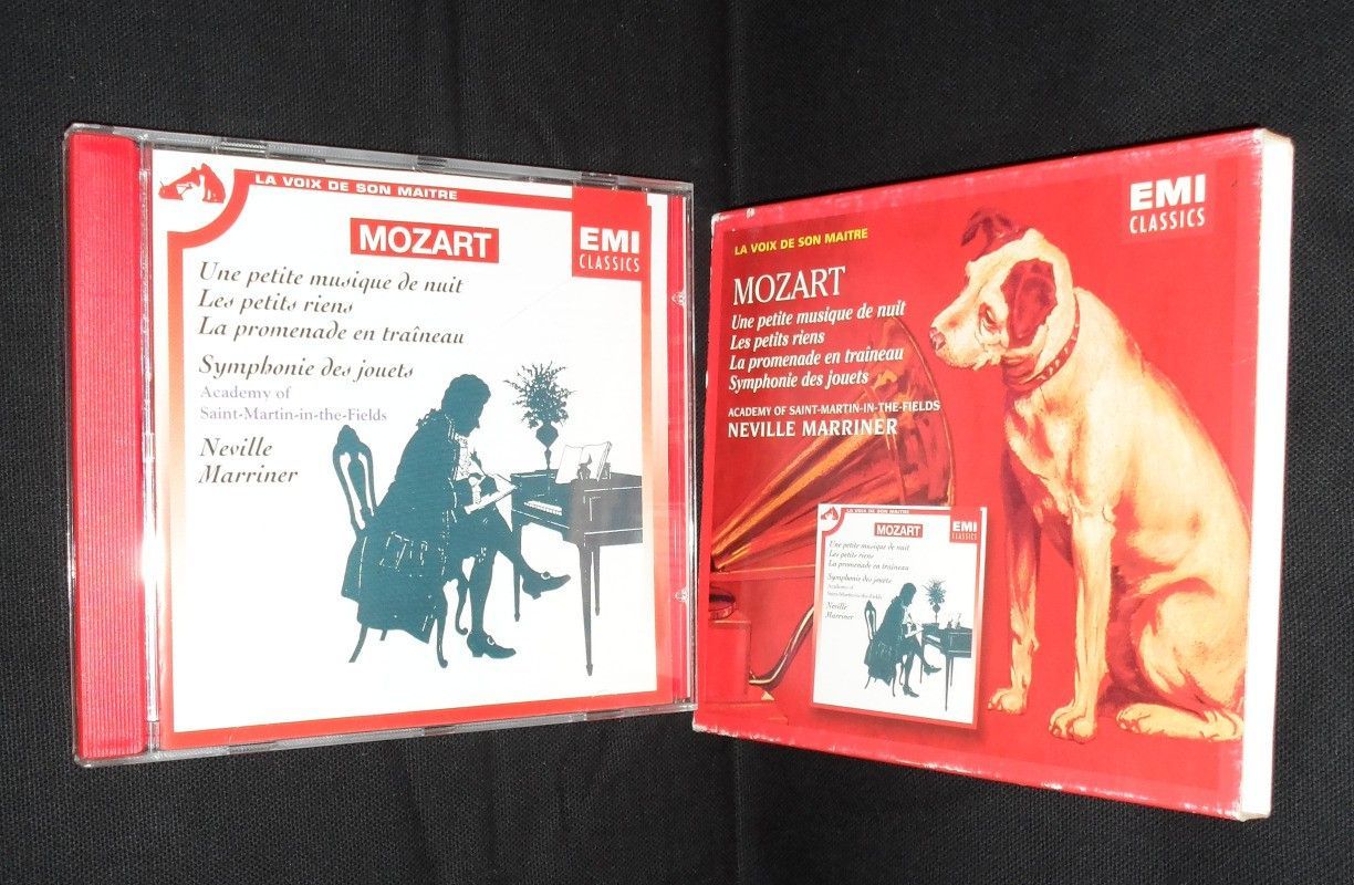 1 CD sous emboîtage carton "Une petite musique de nuit / Les petits riens / La promenade en traîneau / Symphonie des jouets. Academy of Saint-Martin-in-the-Fields Neville Marriner", durée totale de 54'42 min., collection Musique Sacrée ; emboîtage carton un peu frotté, boîtier et CD intact, très bon état.