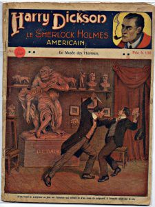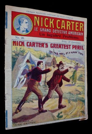 In-4 (21,8 x 27,5 cm), fascicule agrafé, 32 pages, sans date, n°101 de la 1ère série de "Nick Carter", couverture au médaillon ; dos usé, par ailleurs bel état général pour ce type de publication relativement fragile.