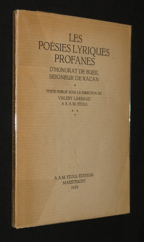 In-8 broché, 113 pp. non coupé, imprimé en deux couleurs (noir et rouge), texte publié sous la direction de Valery Larbaud et de A.A.M. Stols, tirage à 350 ex. ici un des 300 ex. numérotés...