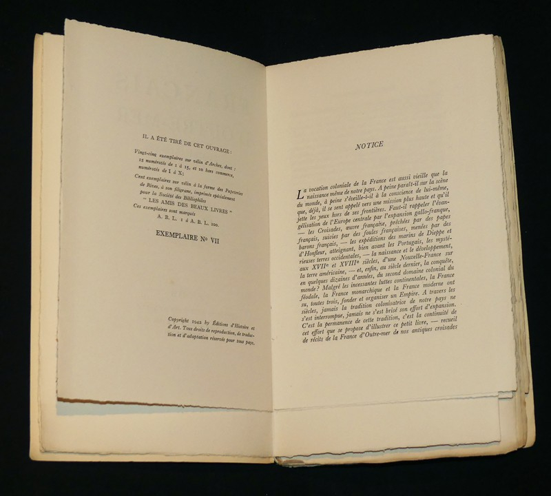 In-8 (13 x 21,3 cm), broché, 118 pages, 1 des X (10) exemplaires hors commerce (ici le n°VII) sur vélin d'Arches, grandes marges, non rogné ; mors inférieur fendu en queue, fine pliure au dos, par ailleurs assez bel état.