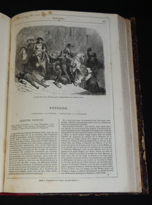 In-4 (20 x 28,8 cm), reliure demi-basane, dos lisse, 448 pages, sans date [1861], 23 cartes en couleurs, nombreuses gravures en noir ; quelques épidermures et zones insolées sur le cuir, frottements et rayures aux plats, coupes frottées, des rousseurs à l'intérieur plus ou moins importantes selon la section de l'ouvrage, assez bon état.
