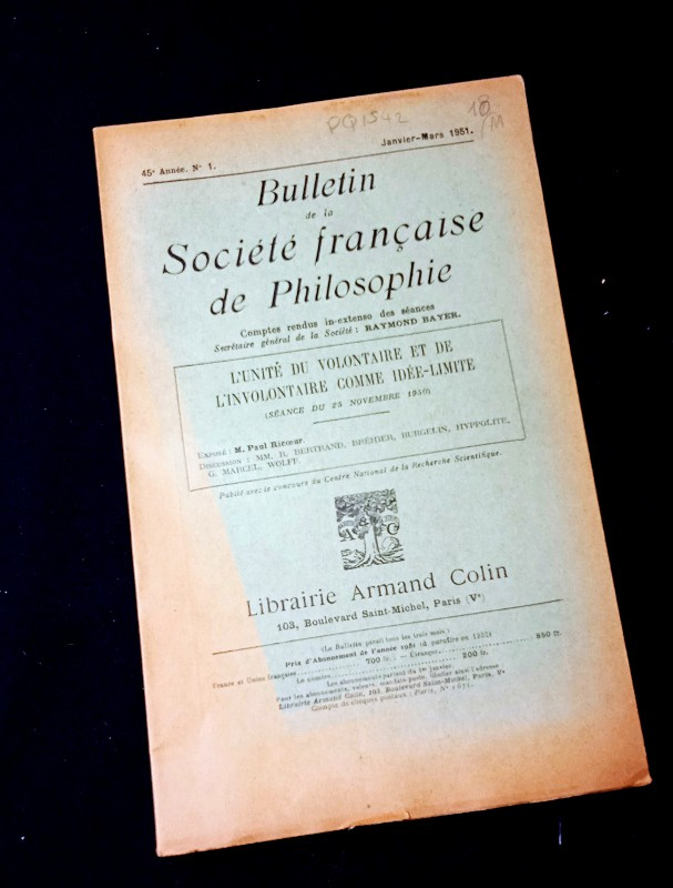 In-8 (16,5 x 25,5 cm.), revue en brochure d'éditeur, "Le primat de la perception et ses conséquences philosophiques", de la page 120 à la page 153, quelques annotations dans le texte ; plats...