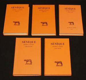 Cinq volumes in-12 (13,5 x 20 cm), cartonnés, texte latin avec la traduction française en regard, complet en cinq volumes, imprimés respectivement en 1985, 1987, 1989, 1987 et 1979 ; dos du 3e volume un peu insolé, par ailleurs très bon état général.