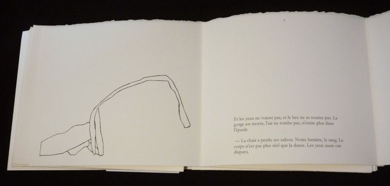 In-4 (25 x 21,8 cm), feuilles sous couverture et emboîtage, poème d'Erwann Rougé avec une suite de seize dessins à la plume dont 6 vignettes par Yves Picquet, 1 de 28 exemplaires numérotés sur vélin d'Arches issus du seul tirage, signé au colophon par le poète et le peintre ; très bon état.