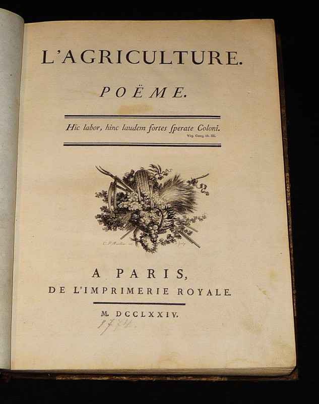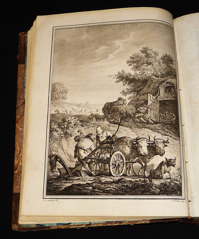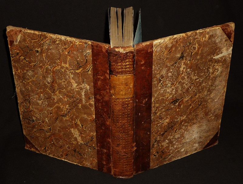 In-4 (21 x 26,5 cm), reliure demi-peau, dos lisse orné de dorures et d'une pièce de titre, 277 pages, 2 frontispices et 6 gravures hors texte ; coiffes, coupes et coins usés, déchirures et épidermures sur le cuir, frottements aux plats, par ailleurs intérieur bien conservé et frais, en l'état, à restaurer.