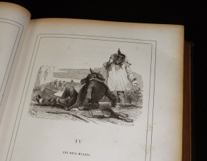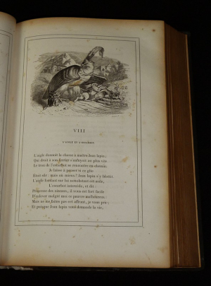 In-4 (19,2 x 27,3 cm), reliure demi-chagrin, dos à 4 nerfs, plats de percaline chagrinée, 598 pages, gravures en noir de Granville ; mors et coupes frottés, mors supérieur fendu en queue et recollé, quelques frottements aux plats, rousseurs à l'intérieur, par ailleurs assez bon état général.