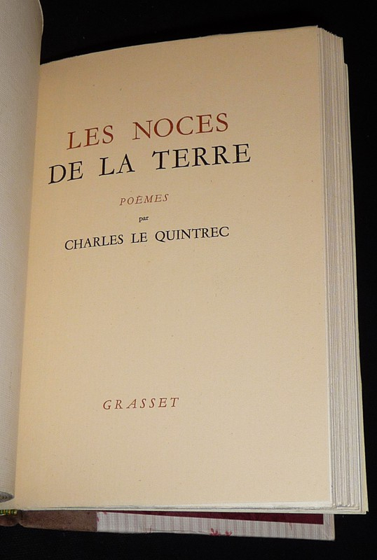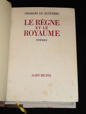 In-8 (15,5 x 20,5 cm), reliure demi-peau, dos à 5 nerfs, pièce de titre, deux ouvrages de poésie de Charles Le Quintrec reliés ensemble : "Le Règne et le royaume" (1983, Albin Michel, 355 pages, envoi de l'auteur) et "Les Noces de la terre" (1957, Grasset, 132 pp.) ; quelques rousseurs sur la couverture conservée de "Le Règne et le royaume", par ailleurs bel état.