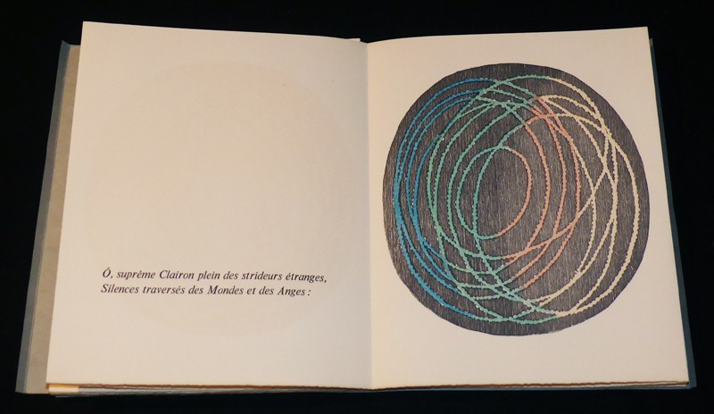 In-4 (20 x 25,5 cm), leporello sous chemise embossée au premier plat et étui cartonné bleu, UN DES 50 EXEMPLAIRES NUMEROTES tirés sur vélin d'Arches (ici le n°33), SIGNE par Robert Blanchet, gravures sur bois en couleurs ; légers frottements aux angles de l'étui, par ailleurs très bel exemplaire.