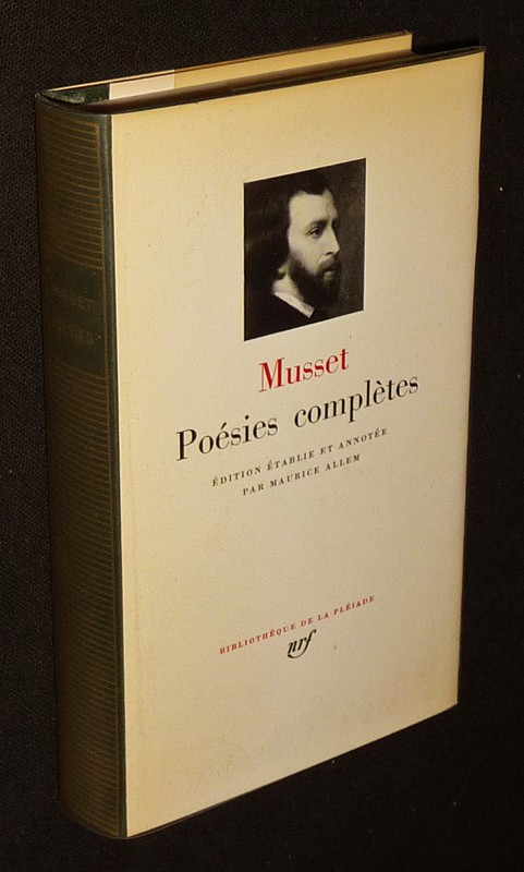 In-12 (11 x 18 cm), reliure d'éditeur avec demi-jaquette sous rhodoïd, XXVIII-940 pages, ce volume contient : Premières poésies - Poésies nouvelles - Poésies complémentaires - Fragments de poésies inachevées - Poésies attribuées à Musset, édition établie et annotée par Maurice Allem ; rhodoïd un peu jauni, très bon état général.