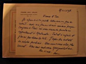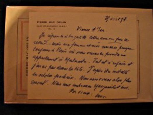 In-12 broché, 225 pp., envoi signé de Mac Orlan à t'Sersteven 'A t'Serstevens dit T'Ser à Amandine, leur vieil ami, Mac', joint un biller de Mac Orlan aux mêmes : 'Vieux t'Ser., je réponds à ta gentille lettre avec un peu de retard... Mais ma femme et moi sommes presques toujours à Paris où nous venons de prendre un appartement à Montmartre. Tout est à refaire et j'en ai par dessus la tête. j'espère être installé en Octobre prochain. Nous nous verrons alors plus souvent. Nous vous embrassons Marguerite et moi. Ton vieux : Mac' exemplaire en S.P. ; très bon état.