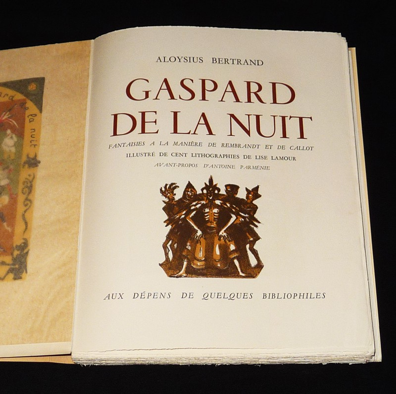 In-4 (23,5 x 29 cm), exemplaire en feuilles sous couverture, chemise et emboîtage, 1 de 300 exemplaires sur vélin chiffon, 164 pages, illustré de lithographies en couleurs de Lise Lamour ; quelques frottements sur les angles de l'étui, par ailleurs très bel exemplaire.