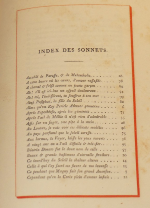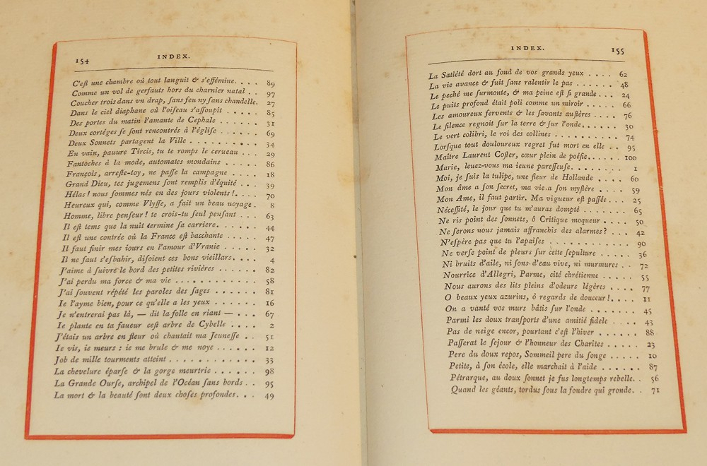 In-8 (13,3 x 20,4 cm), reliure demi-maroquin à coins, dos à 5 nerfs, XXXV-156 pages, texte encadré, grandes marges ; frottements aux mors, coiffes et coupes, quelques rousseurs, par ailleurs assez bon état général.