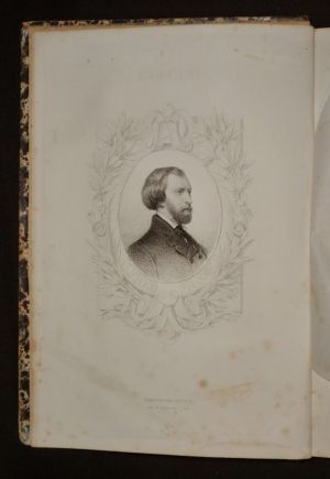 In-4 (21 x 28,7 cm), reliure demi-chagrin, dos orné de fers dorés, gardes couleur, VIII-735 pages + 55 pages d'oeuvres posthumes, quelques gravures hors texte ; coiffes et coins usés, marques de frottement sur les plats et le dos, rousseurs, assez bon état général.