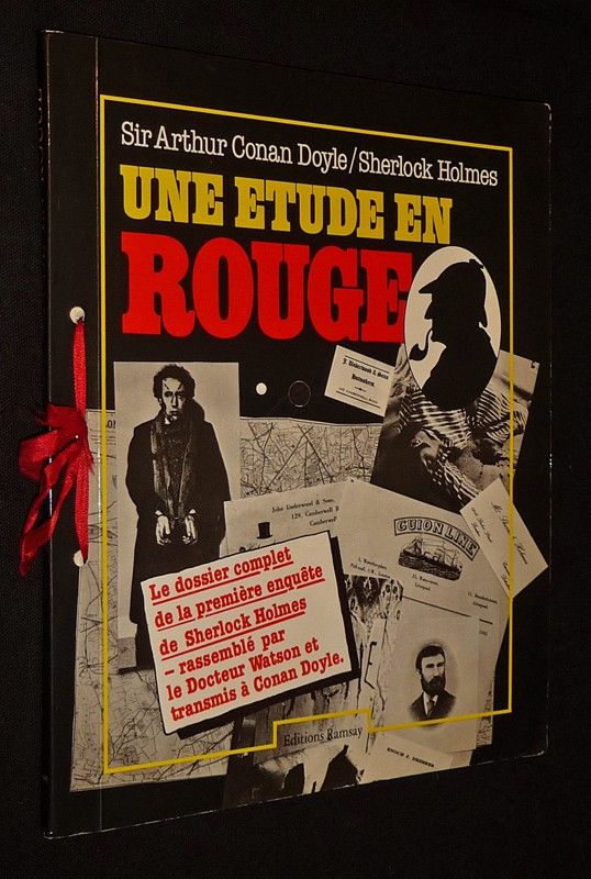 In-4 (21,4 x 26,5 cm), chemise reliée à l'aide d'un ruban, dossier d'enquête avec document, objets pour la première enquête de Sherlock Holmes, édition originale ; bords des plats frottés, par ailleurs bon état.