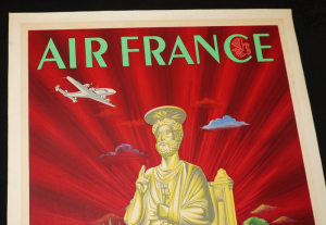 Affiche ancienne Air France (1949), entoilée, dimensions : 61,5 x 99 cm sur support 66,5 x 104 cm, illustration de Plaquet, lithographie imprimée par Perceval, Paris pour promouvoir la destination de Rome ; magnifiques couleurs éclatantes, affiche en superbe état.