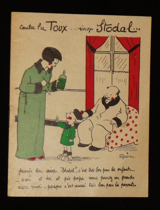 In-12 (10,5 x 13,5 cm), dos agrafé, sans date, plaquette publicitaire de 8 pages pour le sirop Stodal, illustration du premier plat signée R. Guérin ; tampon de pharmacie au quatrième plat, par ailleurs très bon état général.