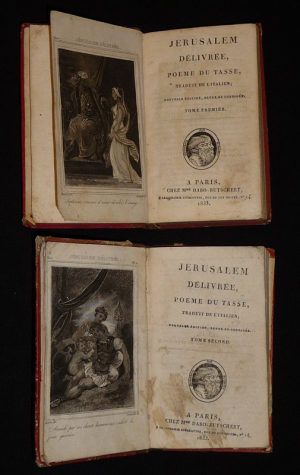 Deux volumes in-12 (8,3 x 13,8 cm), reliure demi-peau, dos lisses, 188 et 196 pages, frontispice gravé dans chaque tome, ensemble complet ; frottements et traces aux plats et coupes, décoloration et quelques taches en début de volume suite à une mouillure au premier plat du tome 2, par ailleurs assez bon état général.