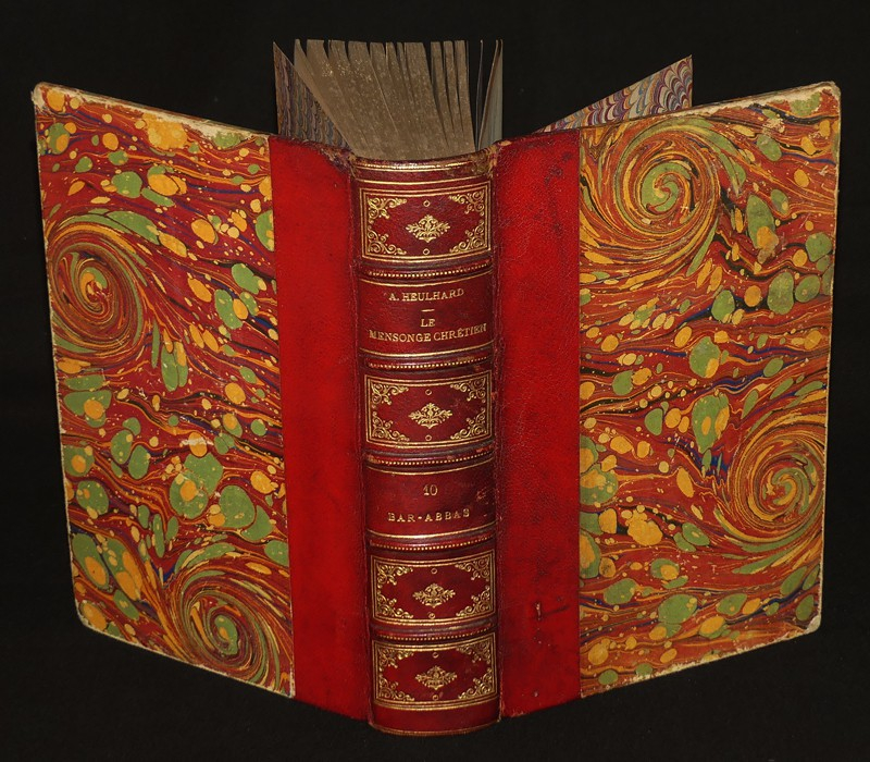 RARE. In-8 (14 x 20,5 cm), reliure demi-peau, dos à 5 nerfs orné de caissons dorés, 447 pages, tome 10 du "Mensonge chrétien (Jésus n'a pas existé)" ; frottements aux coiffes, mors et coupes, papier bruni, quelques rares rousseurs, par ailleurs assez bon état général.