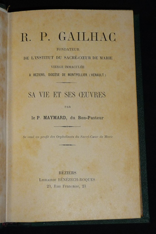 R. P. Gailhac, fondateur de l'Institut du Sacré-Coeur de Marie vierge immaculée à Bézier, diocèse de Montpellier (Hérault) : Sa vie et ses oeuvres