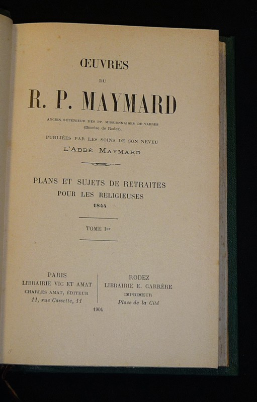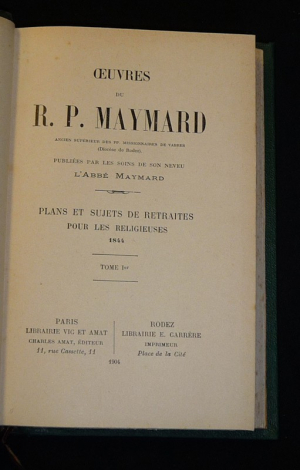 Oeuvres du R. P. Maymard. Plans et sujets de retraites pour les religieuses, 1844 (Tome 1)