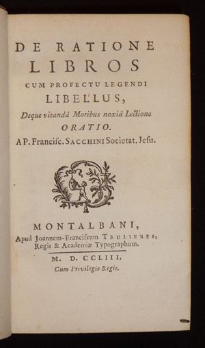 In-12 (9,8 x 15 cm), reliure plein veau, dos à 5 nerfs orné de caissons dorés, recueil de 6 ouvrages reliés ensemble : 1. "De ratione libros cum profectu legendi libellus, Deque vitandâ Moribus...