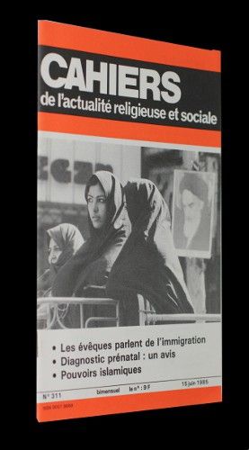 In-12 (13.5x21 cm), brochure, plats illustrés, 393 à 404 pp., n°311 des Cahiers de l'actualité religieuse et sociale, 15 juin 1985 : Les évêques parlent de l'immigration ; Diagnostic prénatal : un avis ;Pouvoirs islamiques ; bel état.