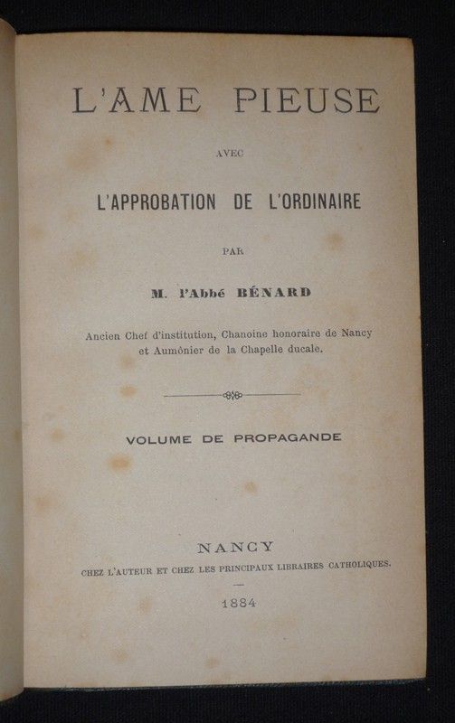 In-12 (12 x 17,8 cm), reliure demi-chagrin, plats de percaline chagrinée, dos à 4 nerfs orné de liserés et caissons dorés, gardes couleur, VI-441 pages ; dos décoloré, intérieur bruni, bon état général.