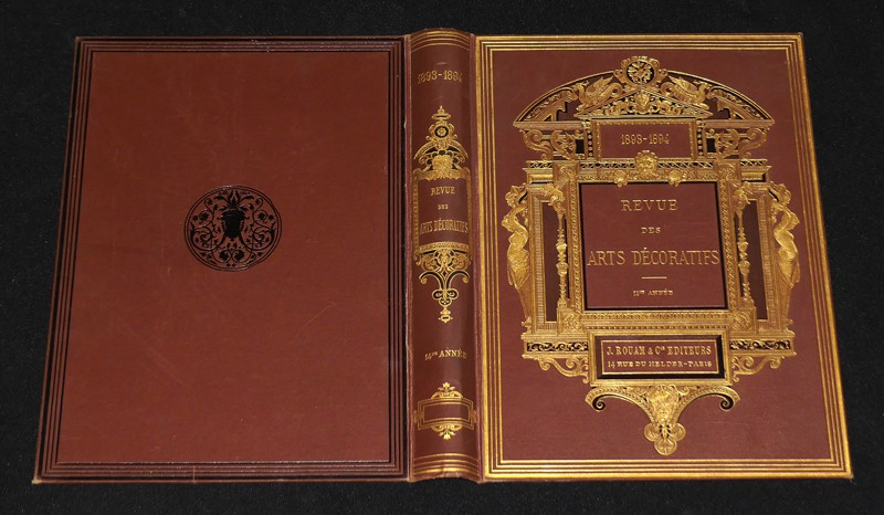 Reliure vide au format 31 par 23 cm pour les plats, pleine percaline lie de vin, plats de carton, dos renforcé par un carton souple incurvée, prévue pour relié l'année 93 - 94 de la revue des arts décoratifs, rare objet, témoignage de la grande époque du cartonnage d'éditeur ; très bon état.