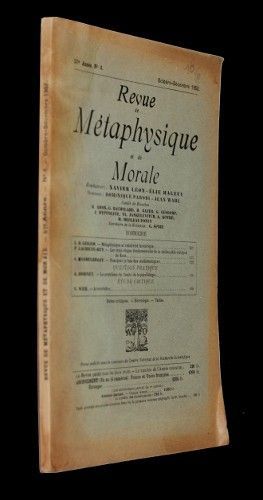 In-8 (16x24 cm), broché, 358-455 pp., ouvrage collectif, 56e année de la Revue de métaphysique et de morale, n°4, octobre-décembre 1951 ; une pliure et une étiquette au dos, coiffes frottées, volume jauni, intérieur frais, assez bon état.
