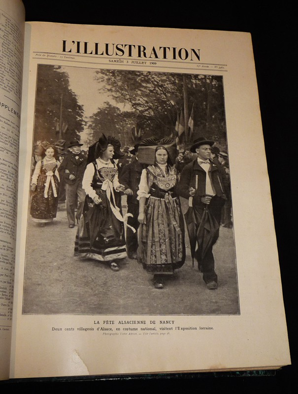 Deux volumes in-folio (30,7 x 40,7 cm), reliure demi-basane, dos à 4 nerfs, 448 et 494 pages, année 1909 complète de "L'Illustration", du n°3436 (2 janvier 1909) au n°3487 (25 décembre 1909) ; dos insolé, frottements aux coupes et quelques frottements aux plats, par ailleurs bon état général.