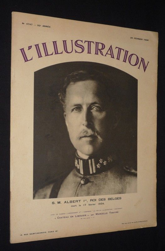 In-folio (28,5 x 38 cm), revue brochée, n°4747 (24 février 1934) de la revue L'Illustration, photographies en noir et blanc ; quelques légères traces et marques d'usage sur la couverture, bon état.