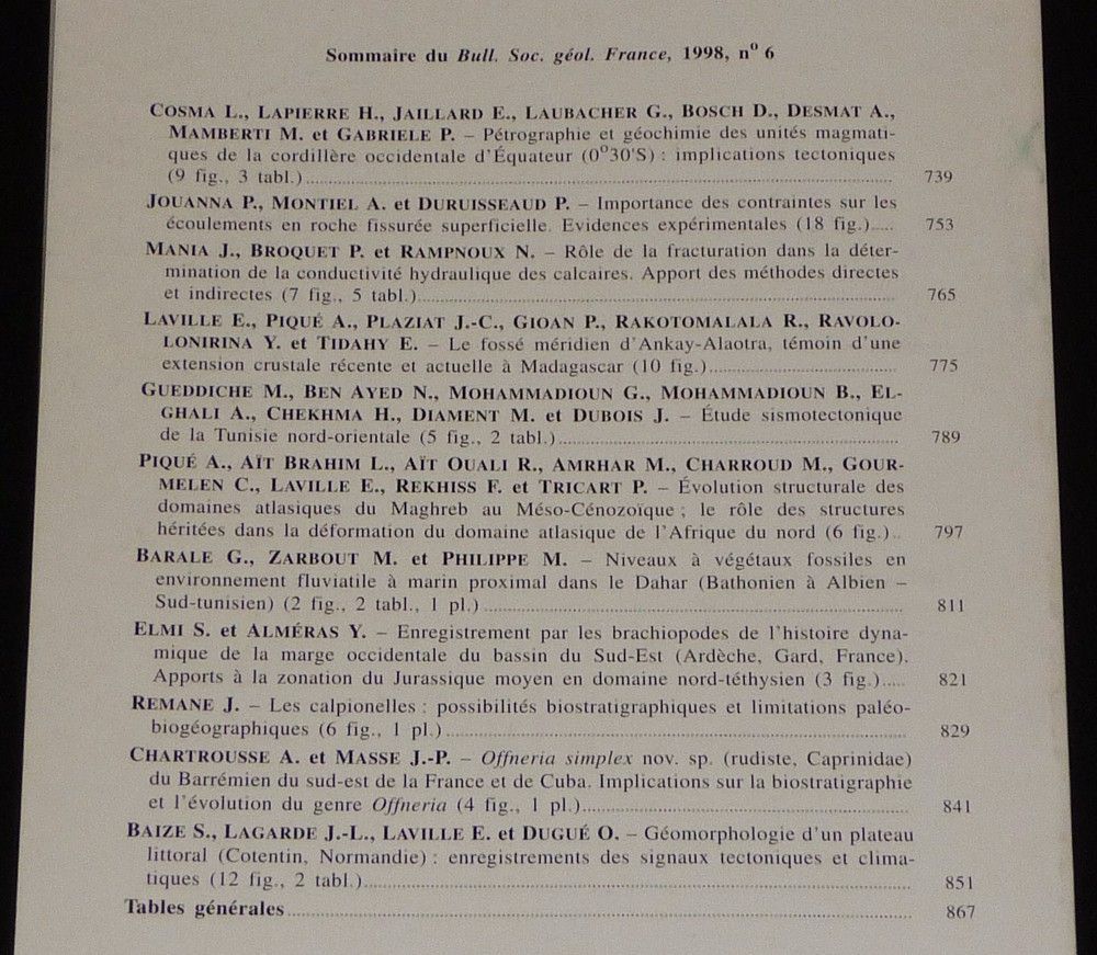 Bulletin de la Société géologique de France (Tome 169, n°6, 1998)