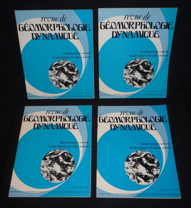 Quatre volumes in-4 (21 x 27 cm), dos agrafé, n°1 à 4 de l'année 1973 soit XXIIe année complète de la "Revue de géomorphologie dynamique" ; quelques marques d'usage et froissements sur les plats, assez bon état.