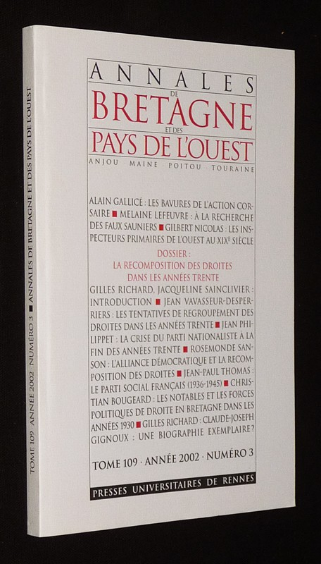 Détails Annales de Bretagne et des Pays de l'Ouest (année 1995, Tome 102, n°3)