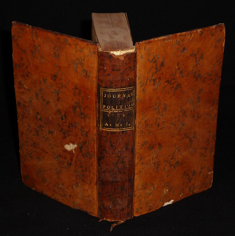 In-12 (10 x 17 cm), reliure plein veau, dos lisse, pièce de titre, 518 pages, du n°10 (10 avril 1775) au n°18 (30 juin 1775) ; épidermures sur le cuir, petit travail de vers au mors inférieur en tête, au premier plat et jusqu'à la page 10, par ailleurs intérieur bien conservé, assez bon état général.