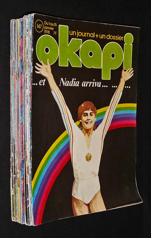 In-4 (21 x 29,7 cm), revue dos agrafé, année 1978 complète de "Okapi" en 24 numéros, du n°147 (1-15 janvier 1978) au n°170 (15-31 décembre 1978) ; dos frottés, usures sur les bords des plats de quelques numéros, par ailleurs bon état général.