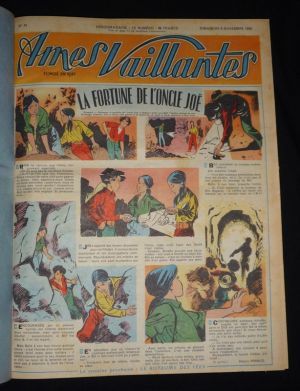 Deux volumes in-folio (30 x 38 cm), reliure demi-toile, dos lisses, des volumes contiennent les numéros de la revue "Ames vaillantes" suivants : 1955 : du n°45 (6 novembre 1955) au n°52 (25 décembre 1955) // 1956 : du n°1 (1er janvier 1956) au n°53 (30 décembre 1956) sauf n°46 // 1957 : du n°2 (13 janvier 1957) au n°42 (20 octobre 1957) sauf le n°40 ; première page du n°2 et 3 de 1957 découpées, bon état général.