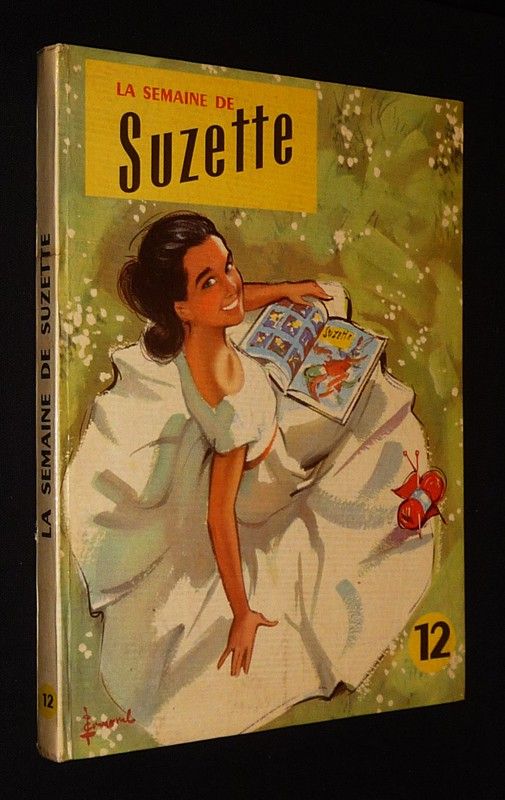 In-4 (21 x 28 cm), album cartonné, recueil n°12 de La Semaine de Suzette, du n°40 du 29 août au n°52 du 21 novembre 1957 ; volume uniformément bruni, petit incident au mors inférieur, par ailleurs assez bon état.