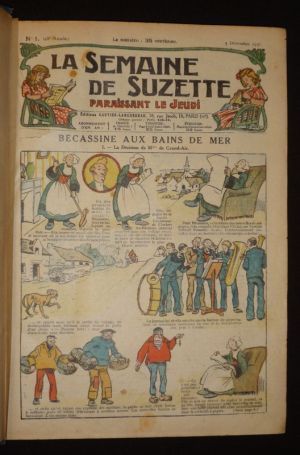 In-4 (23 x 32,5 cm), reliure demi-toile, dos lisse, année 1909 complète de la revue "Le Jeudi de la jeunesse", du n°246 (7 janvier 1909) au n°296 (23 décembre 1909), cette revue hebdomadaire...