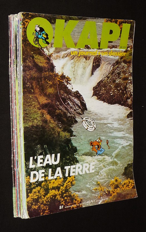 In-4 (20,5 x 29,5 cm), revue dos agrafé, 9 numéros à suivre de Okapi, du n°171 (1-15 janvier 1979) au n°179 (1-15 mai 1979) ; dos usés parfois un peu fendus aux coiffes, quelques marques d'usage sur les plats, par ailleurs assez bon état général.