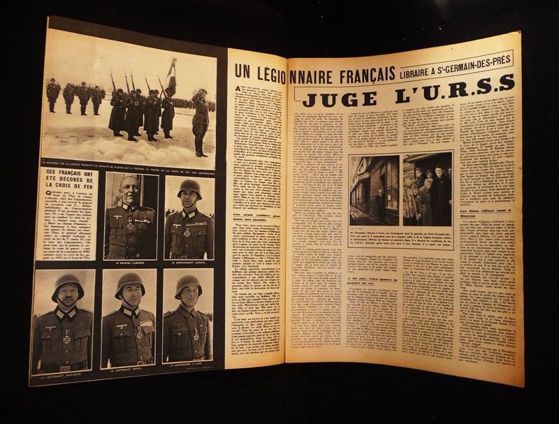 In-folio (27,5 x 35,7 cm), dos agrafé, 12 pages, ce numéro contient l'article "Un légionnaire français libraire à Saint-Germain-des-Prés juge l'U.R.S.S." ; dos et bords des plats un peu frottés, par ailleurs très bon état général.