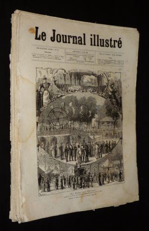 In-folio (29 x 39 cm), journal en feuilles, lot de 20 numéros de l'année 1881 du "Journal illustré", du n°25 (19 juin 1881) au n°30 (24 juillet 1881) et du n°39 (24 septembre 1881) au n°52 (25 décembre 1881) ; déchirures sur les bords et dos plus ou moins abîmés selon le numéro, rousseurs sur les plats, mouillure sur les premiers numéros, manque dans le coin inférieur de trois numéros (sans manque de texte toutefois), par ailleurs assez bon état général.